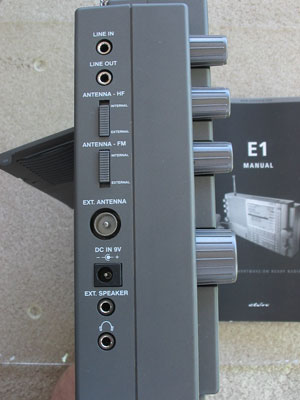 Antennas: The Eton E1 comes with a sturdy collapsible and pivoting antenna as well as a PAL (Europe) type connector for unbalanced (50 to 75 ohm) external antennas. 1/2 wave dipoles, common to the radio shack would require a balun for the most efficient connection and active antennas like the Wellbrook ALA100 loop would not. For those of us over the age of 35, the Eton E1 does not have an internal loop or ferrite antenna - Notice how quickly this article has become ageist? This means that when you are listening to medium-wave signals, you have to have the antenna extended or have an external antenna plugged in. For those of us over-the-hill, we all remember that virtually every portable radio came with an internal ferrite-loop stick antenna that give the AM and LW bands that added boost and resistance to electrical noise. One more reason to invest in a Wellbrook ALA100 antenna! (Note the product placement!)
